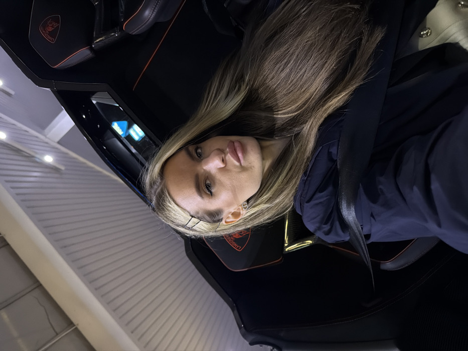 - "A woman with long, light brown and blonde hair, styled with two black bobby pins on the right side, is seated in a dark-colored luxury sports car, likely taking a selfie" by FM-wzXZC3, licensed under CC BY 4.0
