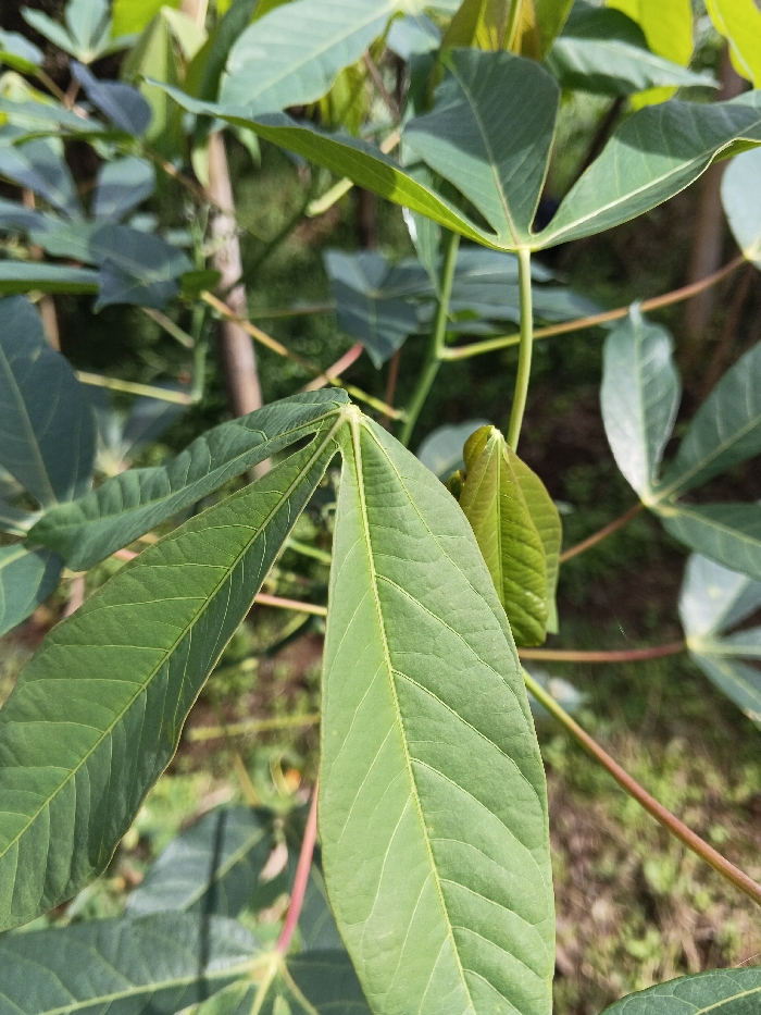 - "Lush green cassava leaves fill the frame, showcasing their palmate shape and prominent veins" by FM-Lsgk03, licensed under CC BY 4.0