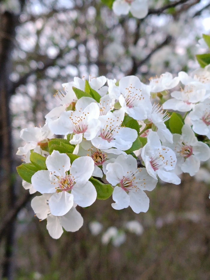 - "A close-up photograph depicts a cluster of white blossoms on a branch, characteristic of a flowering tree" by FM-oWssh1, licensed under CC BY 4.0