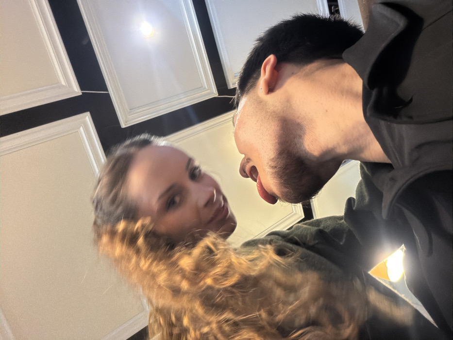 An indoor photograph captures two individuals in close proximity