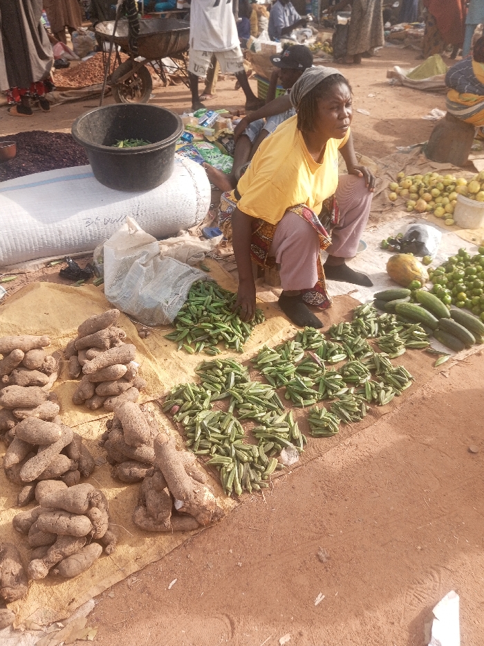 The image portrays an open-air market stall in Kakuri Gwari, Nigeria
