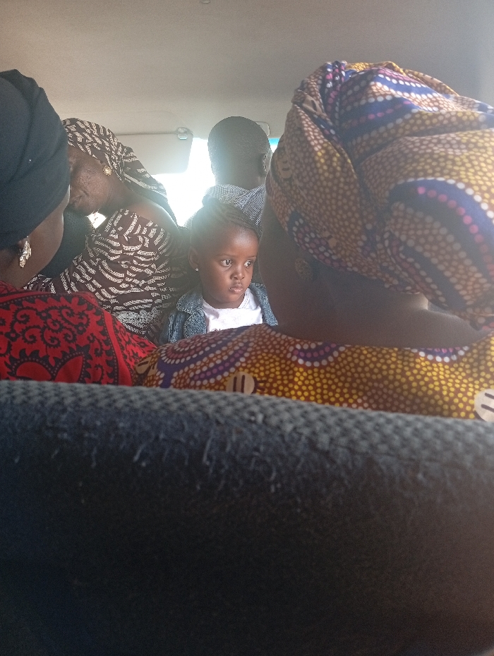 This image depicts the interior of a vehicle in Agunu, Nigeria, with five individuals present