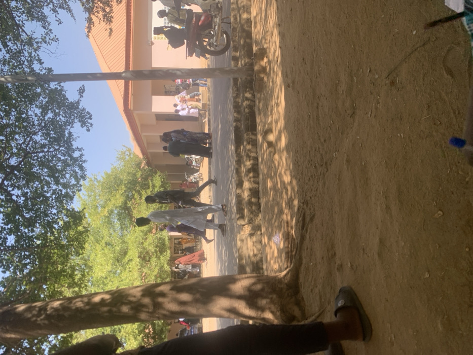 The image depicts an outdoor scene in Dabawa, Nigeria, under clear daylight conditions