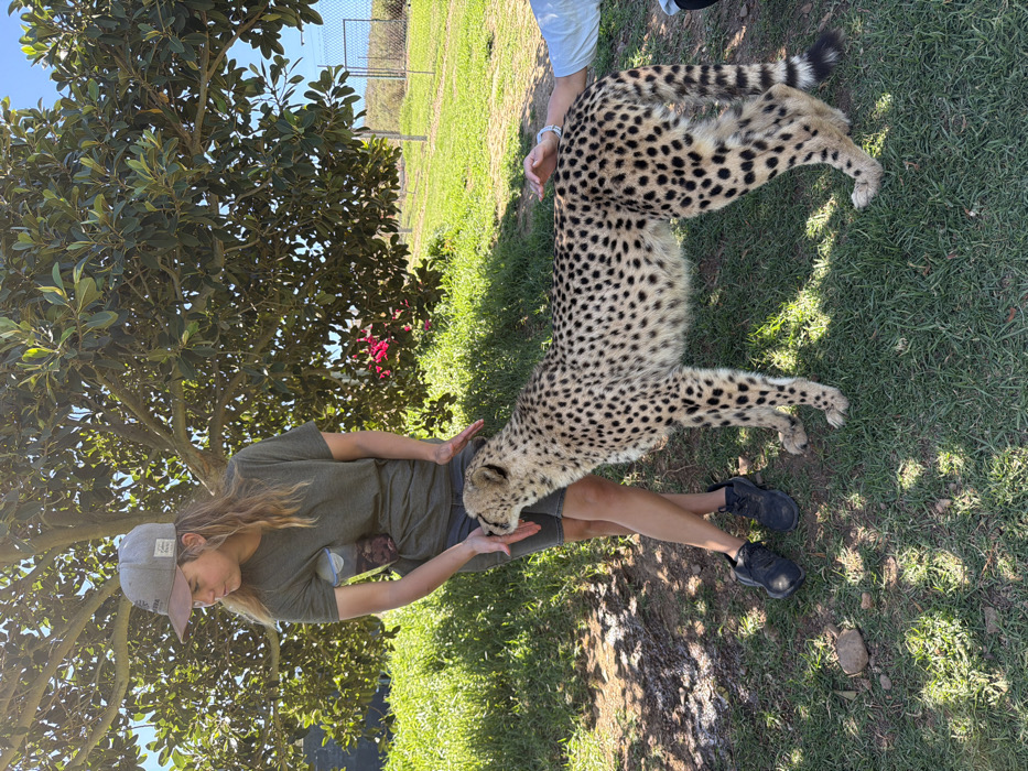 - "A forensic description of the scene in Theewaterskloof Nu, South Africa, depicts an outdoor interaction between two individuals and a cheetah under a tree" by FM-tYDL83, licensed under CC BY 4.0