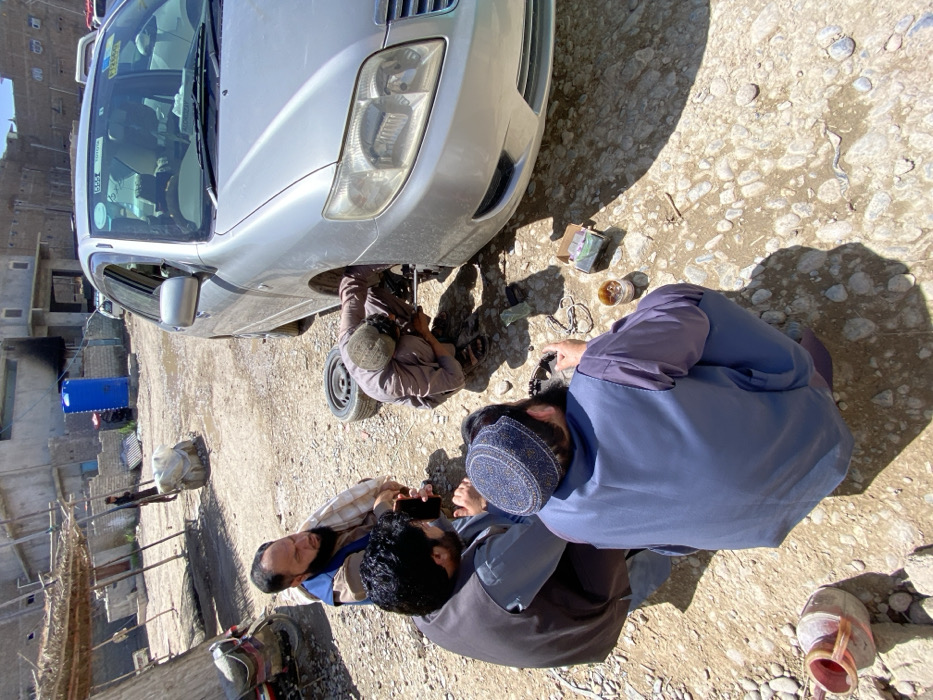 - "This image depicts an outdoor scene in کوکران, Afghanistan, featuring five men around a silver four-door sedan on an unpaved, rocky, and dusty surface" by FM-B5wmg2, licensed under CC BY 4.0