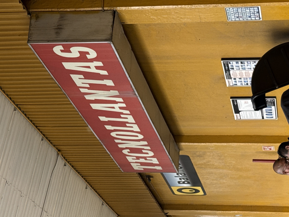 A sign reads "Tecnollantas" in bold white letters on a red background