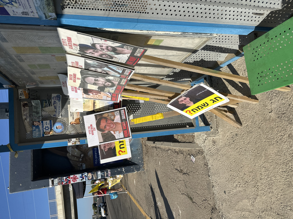 This image depicts a roadside scene on a sunny day, located within the Shaar HaNegev Regional Council, Israel