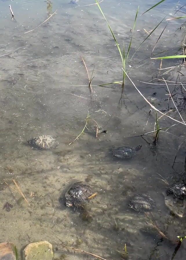 pond with several turtles in it