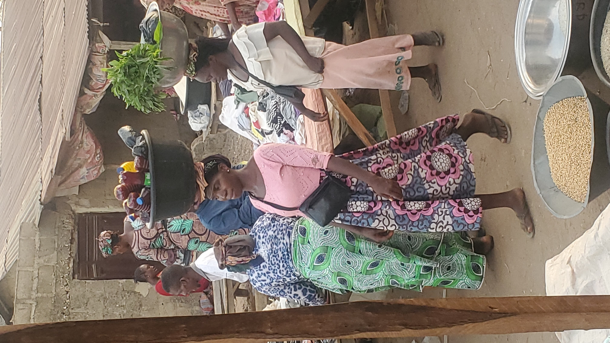 The image depicts an outdoor market scene in Akwanga, Nigeria
