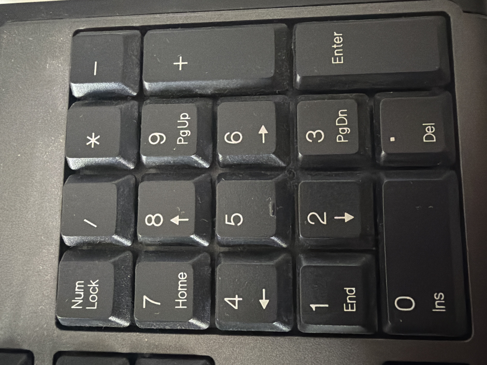 - "The scene, located in Plovdiv, Bulgaria, presents a close-up, top-down view of the numeric keypad section of a standard black computer keyboard" by FM-PjeQD2, licensed under CC BY 4.0