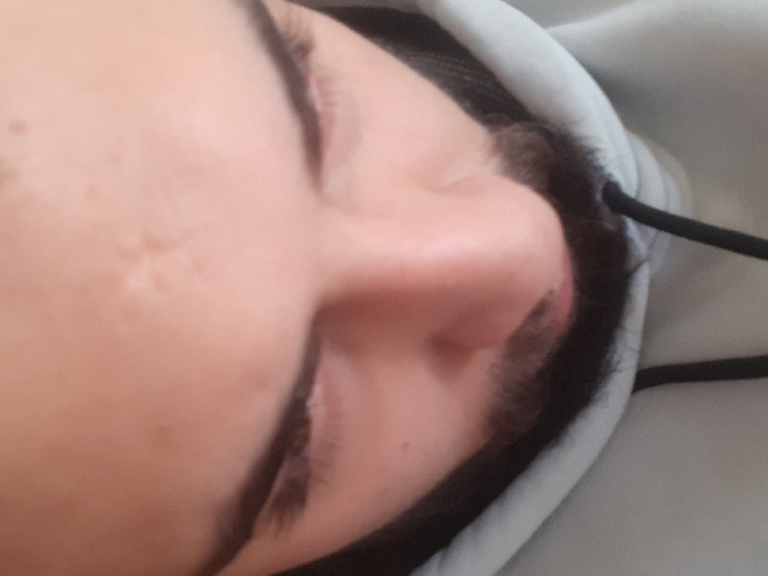 - "The image displays a high-angle, close-up view of the upper portion of a human face" by FM-J2D4h2, licensed under CC BY 4.0