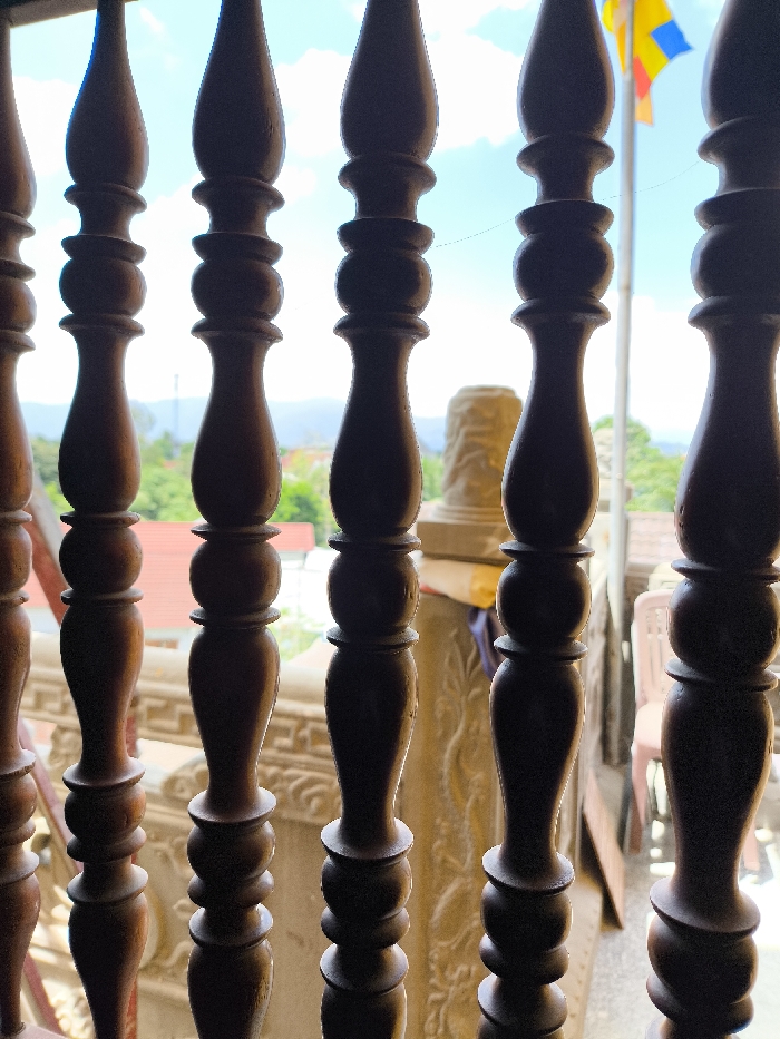 - "The image depicts an outdoor scene in Diên Khánh, Vietnam, viewed through a series of six dark brown, turned wooden balusters positioned in the immediate foreground" by FM-6wLz93, licensed under CC BY 4.0