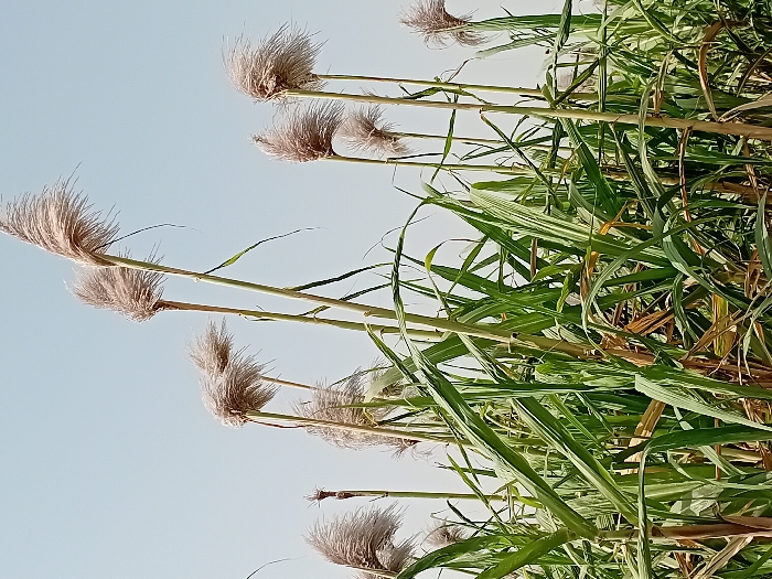 - "The image displays a dense field of tall, grass-like plants, consistent with sugarcane or a similar crop, under a clear, light blue sky" by FM-UapCy2, licensed under CC BY 4.0
