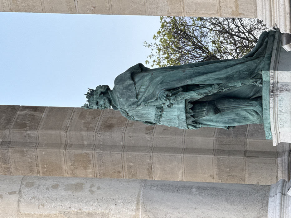 - "The image displays an outdoor scene in Heroes' Square (Hősök tere), Budapest, Hungary, specifically featuring a statue from the Millennium Monument's colonnade" by FM-nJ3pG2, licensed under CC BY 4.0