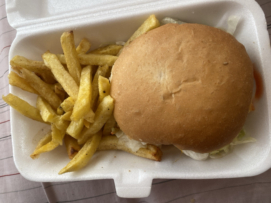 - "A white styrofoam container holds a burger and fries" by FM-33abC2, licensed under CC BY 4.0