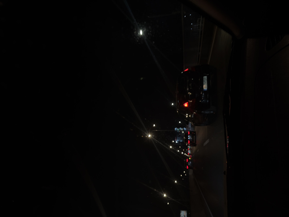 - "The image depicts a nighttime view from the interior of a vehicle, looking forward through the windshield at a multi-lane road in the city of Otopeni, Romania" by FM-3K6t32, licensed under CC BY 4.0