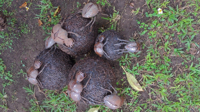 - "The scene depicts a collection of five metal sculptures representing dung beetles and dung balls, positioned on a ground surface in Arusha, Tanzania" by FM-QrecA3, licensed under CC BY 4.0