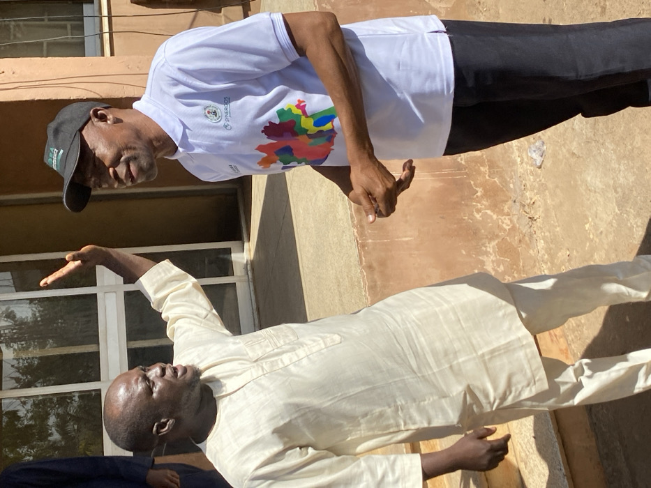 An outdoor, daytime scene in Unguwar Rimi, Nigeria, depicts two adult males engaged in an interaction