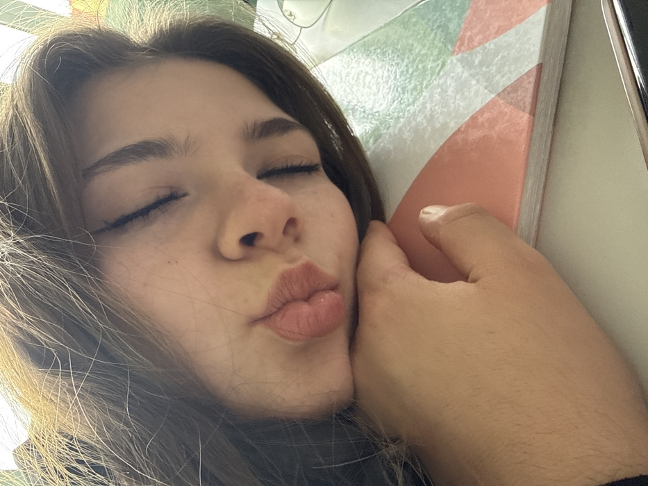 - "A close-up, eye-level indoor photograph taken at an oblique angle depicts an individual with light skin and long, dark brown hair resting" by FM-pq4On2, licensed under CC BY 4.0