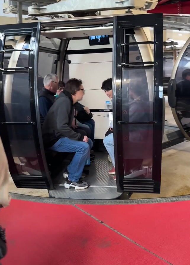 A family of four is entering a gondola car