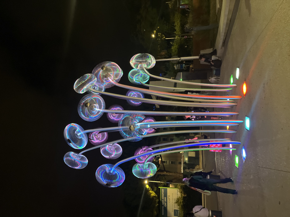 - "The image captures a nighttime scene in Saint-Laurent-du-Var, France, featuring a large, illuminated art installation" by FM-eWTi73, licensed under CC BY 4.0