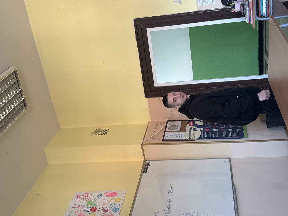 The image depicts an indoor classroom setting, located in Cherven Bryag, Bulgaria
