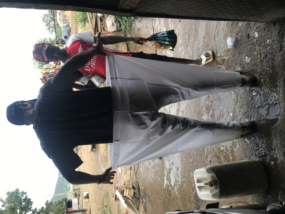 The image captures an outdoor scene in Lokoja, Nigeria, showing two males on a wet, muddy ground