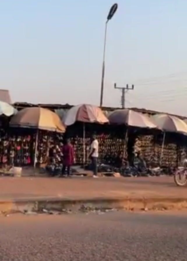 The camera captures a view of what appears to be an outdoor marketplace, possibly a street market
