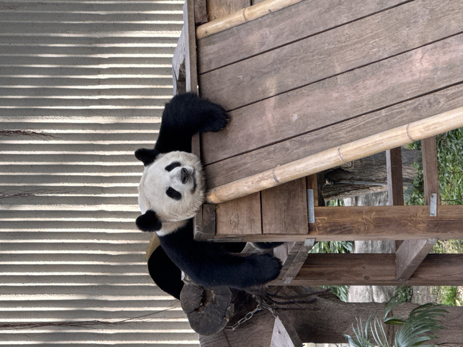 - "A Giant Panda (Ailuropoda melanoleuca) is resting on a multi-level wooden enrichment structure within an enclosure located in Jiulongpo District, China" by FM-K0Kp62, licensed under CC BY 4.0
