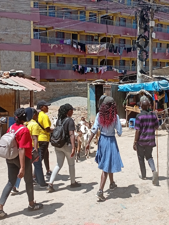 - "This image depicts an urban street scene in Nairobi, Kenya, under bright daylight, casting distinct shadows on the unpaved dirt ground" by FM-FWPKk1, licensed under CC BY 4.0