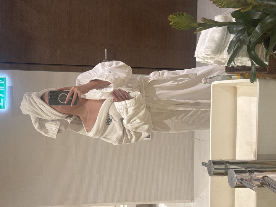 The image captures a mirror selfie taken by a person inside what appears to be a bathroom or changing facility at The Ritz-Carlton Herzliya in Herzliya, Israel