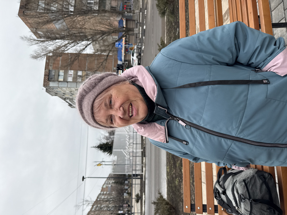 - "An elderly woman is captured in a medium shot, seated on a wooden slatted bench in an urban area identified as Makiivka, Ukraine, under an overcast sky" by FM-RJWfF2, licensed under CC BY 4.0