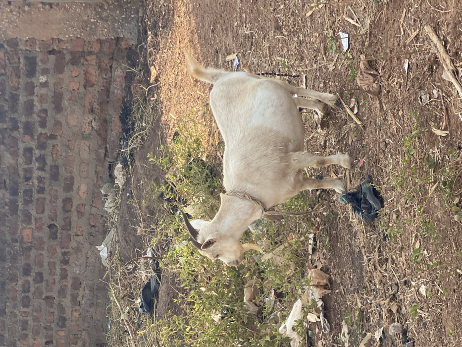 - "The scene, located in Nev, Nigeria, depicts a light-colored goat standing laterally, facing left, in an outdoor environment characterized by dry earth and scattered refuse" by FM-h6TnM2, licensed under CC BY 4.0