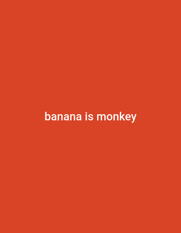 The image displays a solid orange-red background. Centered on this background, in white sans-serif text, is the phrase "banana is monkey". No other subjects, objects, individuals, actions, interactions, or environmental details are present. The image provides no visual information to indicate its location, including the city of Stepnogorsk city administration, Kazakhstan.