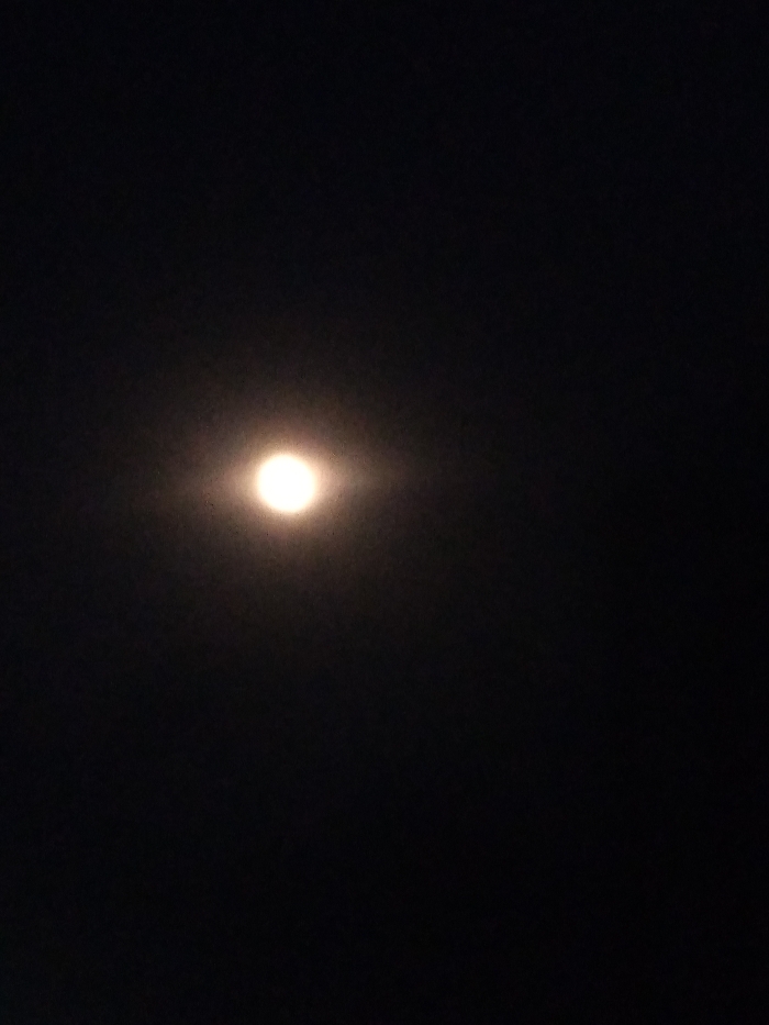 The image displays a dark, nocturnal sky, situated over the city of Narayi, Nigeria. A singular, bright, circular light source, exhibiting a yellowish-white hue and a diffused halo, is positioned near the center of the frame. The surrounding environment is devoid of any discernible celestial bodies other than the primary light source, terrestrial landmarks, structures, individuals, or objects. No actions or interactions are visible. The scene is characterized by the isolated luminescence against an expansive, dark background.