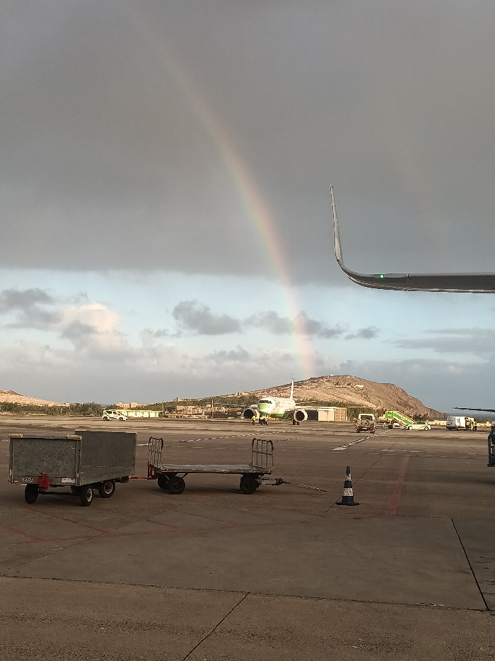 - "An airport tarmac scene with a striking rainbow arcing across the sky" by FM-63vGE2, licensed under CC BY 4.0