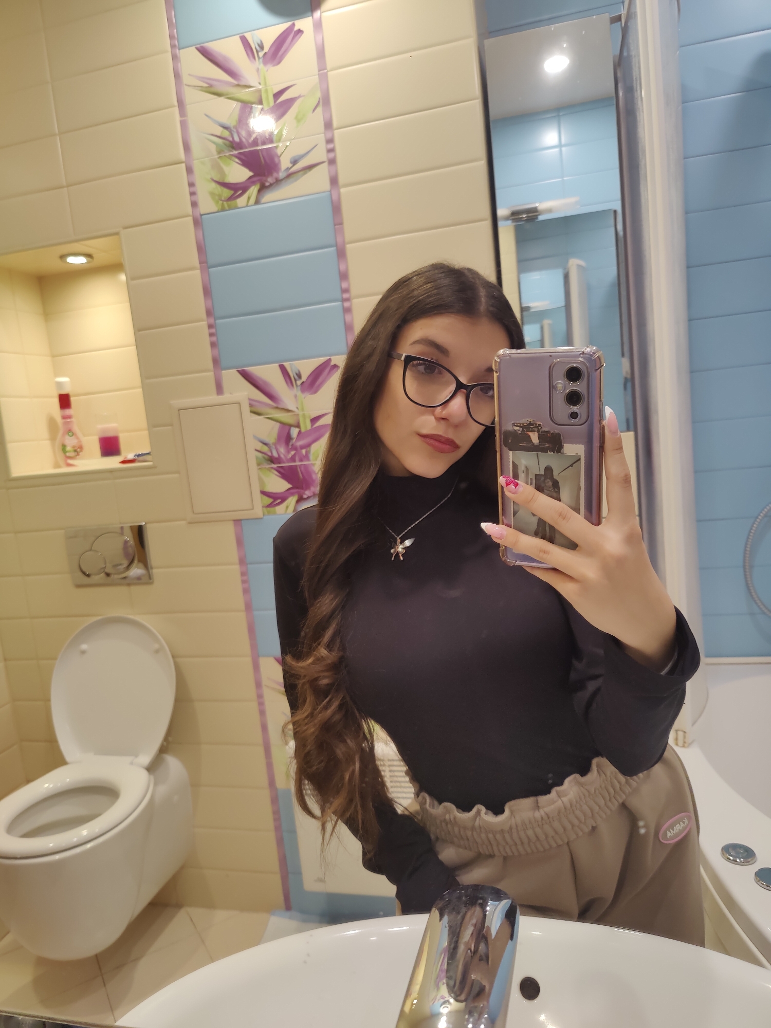 - "A woman with long brown hair and glasses is taking a selfie in a bathroom" by FM-jrZSU2, licensed under CC BY 4.0