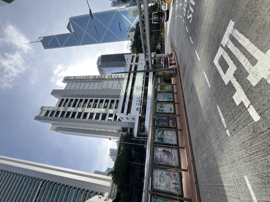 The image captures a daytime urban street scene in Central, Hong Kong Island, China