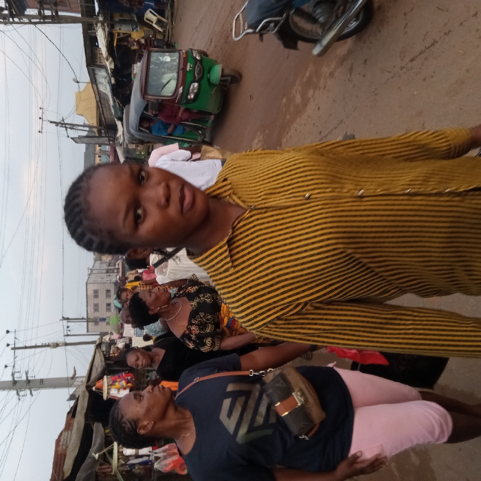 - "The scene depicts a bustling, unpaved street in Umuode, Nigeria, under an overcast sky" by FM-AzUhs1, licensed under CC BY 4.0