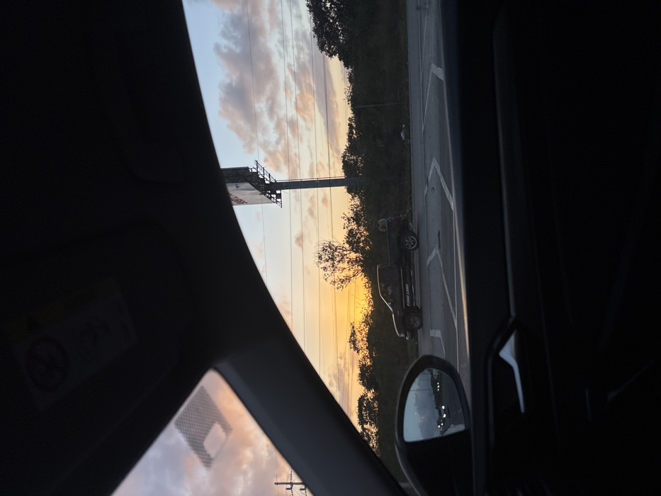 - "The photograph captures a sunset sky with pale orange and blue hues, viewed from inside a car" by FM-jdVku1, licensed under CC BY 4.0