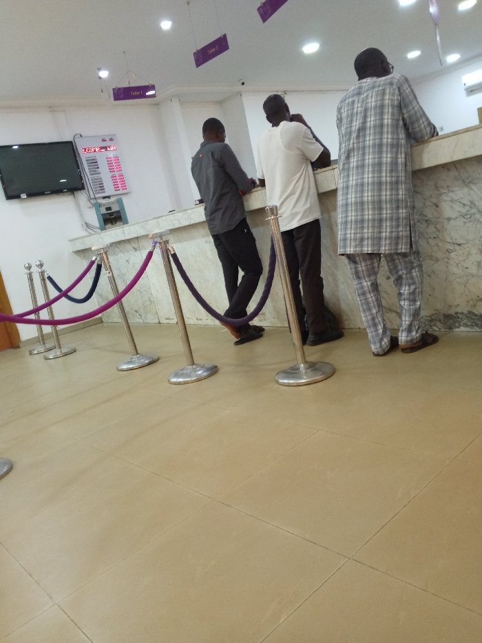 The image depicts the interior of a financial institution in Markurdi, Nigeria