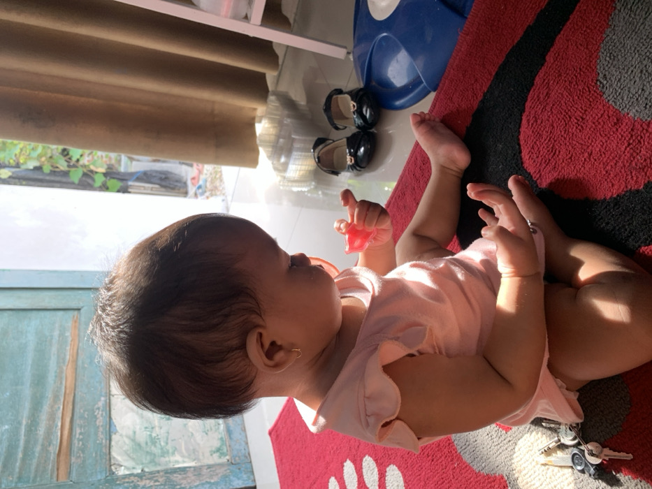 - "The scene depicts an infant seated on a red and black patterned rug inside a residence in Kecamatan Pati, Indonesia" by FM-jFYoF3, licensed under CC BY 4.0