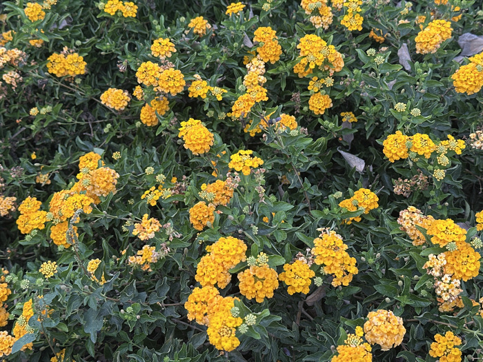 The image displays a dense botanical scene, specifically a close-up view of a flowering shrub located in Rishpon, Israel