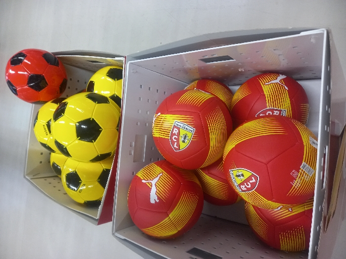 - "This image displays two open cardboard boxes filled with soccer balls, situated in a retail or club merchandise setting within Vendin-le-Vieil, France" by FM-MtLfs2, licensed under CC BY 4.0