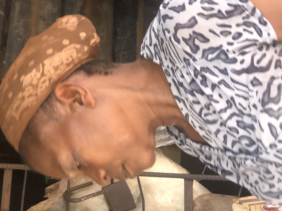 The scene, located in Enugwu-Ukwu, Nigeria, features an adult female depicted in profile, oriented to the left