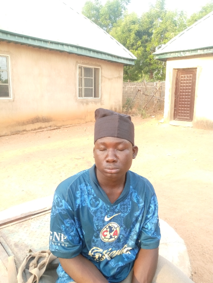A young male individual is seated outdoors in Gaklang, Nigeria