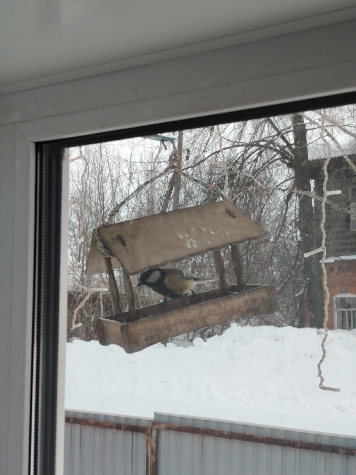 - "A bird feeder with a bird inside hangs outside of a window in winter" by FM-9xtHL2, licensed under CC BY 4.0