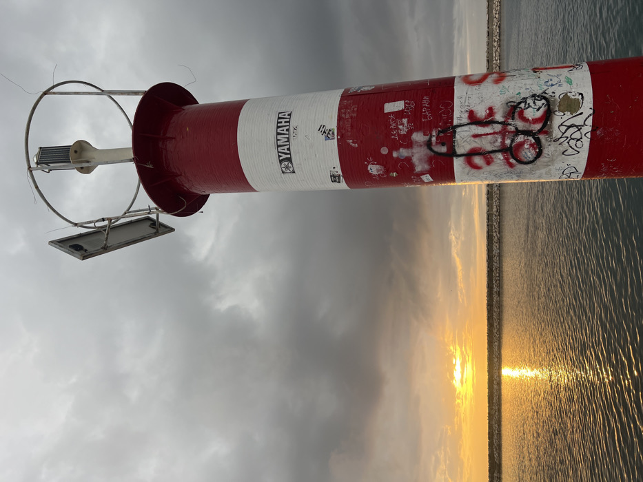 - "The image depicts a red and white striped cylindrical navigational marker situated in the harbor of Bar, Montenegro, at sunset" by FM-T5Wdg1, licensed under CC BY 4.0