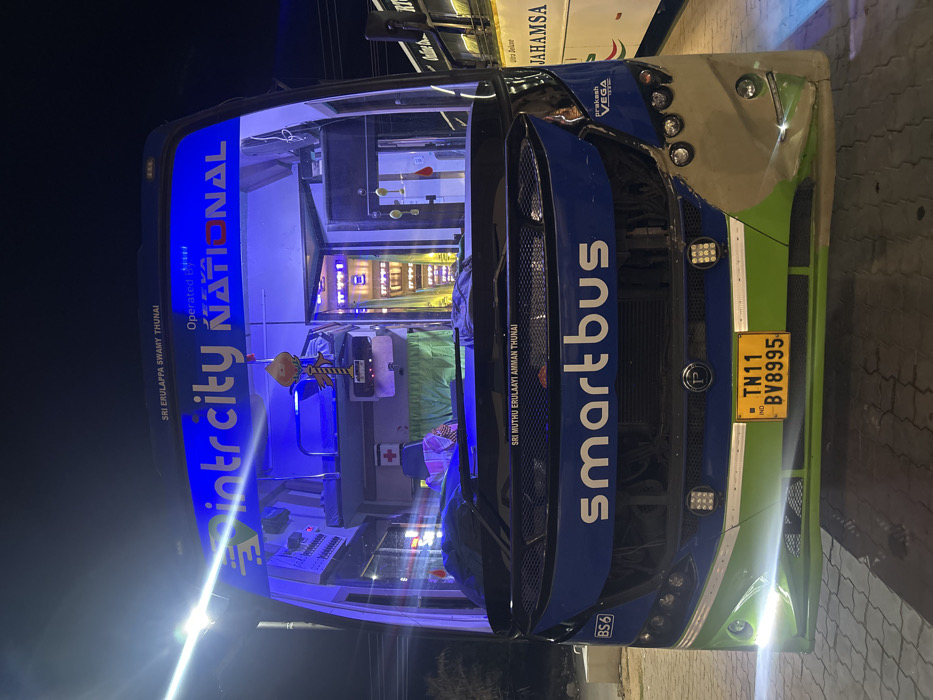- "A dark blue and green Prakash VEGA "Smartbus" sleeper coach, bearing the license plate TN11 IND BV8995, is depicted in a frontal view at night in Somanathapalli, India" by FM-YIfw03, licensed under CC BY 4.0