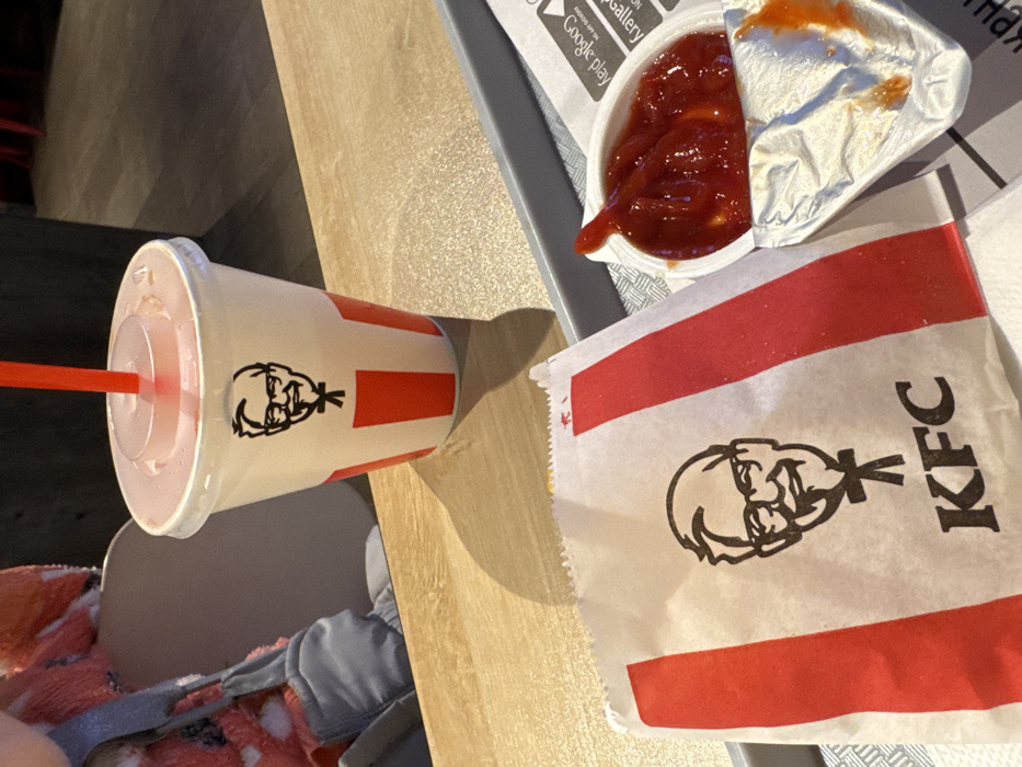 A KFC meal sits on a table